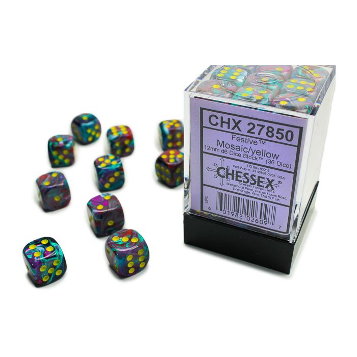 D6 Cube 12mm Festive Mosaic With Yellow (36) D6 Cube 12mm Festive Mosaic With Yellow (36) Save $-11.95 0 0 / total reviews: () Soldout Regular price $11.95 D6 Cube 12mm Festive Mosaic With Yellow (36) Chessex Manufacturing Quantity Decrease quantity for D6 Cube 12mm Festive Mosaic With Yellow (36) Increase quantity for D6 Cube 12mm Festive Mosaic With Yellow (36) Sold out