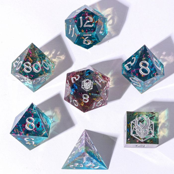 HANDMADE WITH SHARP EDGES: Each dice set is meticulously hand-poured, sanded, polished, and inked, with every piece undergoing careful inspection and packaging. As the debut edition of resin dice from HYMGHO, this collection took over 5 months to perfect. The intricate handcrafting process ensures sharp edges and a crystal-clear finish, resulting in dice that are as visually stunning as they are functional. Every set is a testament to craftsmanship, offering both beauty and precision for your gaming experience.