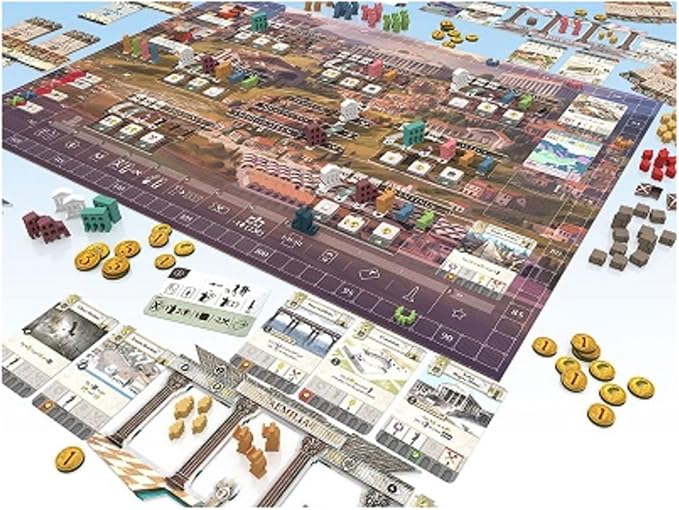 Æterna, a game by Martin Wallace and Ergo Ludo, players take on the role of a Roman Gens, striving for prestige through three Eras: The Roman Kingdom, the Roman Republic, and the Roman Empire. Expand your influence over the city by controlling the 7 Hills, building monuments, and aiding in province conquests. Keep the citizens content, as unrest could harm your reputation. Utilize strategic tactics and decision-making skills as you compete with opponents for dominance in each Era. Increase the power and status of your Gens to climb the social hierarchy of Ancient Rome and claim ultimate power. 2-4 players, ages 14+, with a 60+ minute playtime.