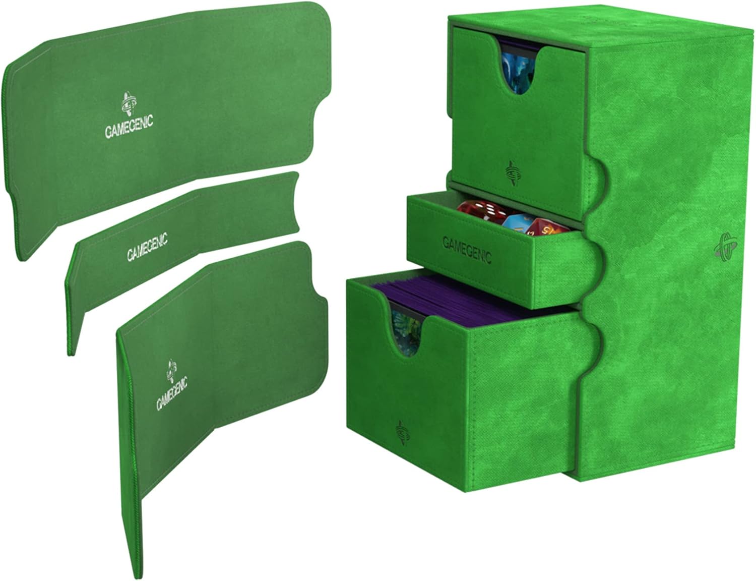 TOP and EXCLUSIVE FEATURE: Designed to hold 200 double-sleeved cards in extra-thick Inner Sleeves, the Stronghold 200+ XL keeps your collection safe and organized. It can also fit 2 Commander decks in thicker sleeves, with extra room for tokens or other accessories. The integrated accessories drawer provides convenient storage for dice, small items, or additional sleeved cards, making it a premium solution for serious card collectors and gamers alike.