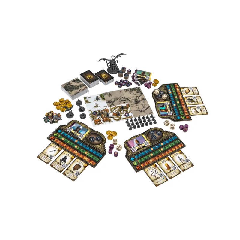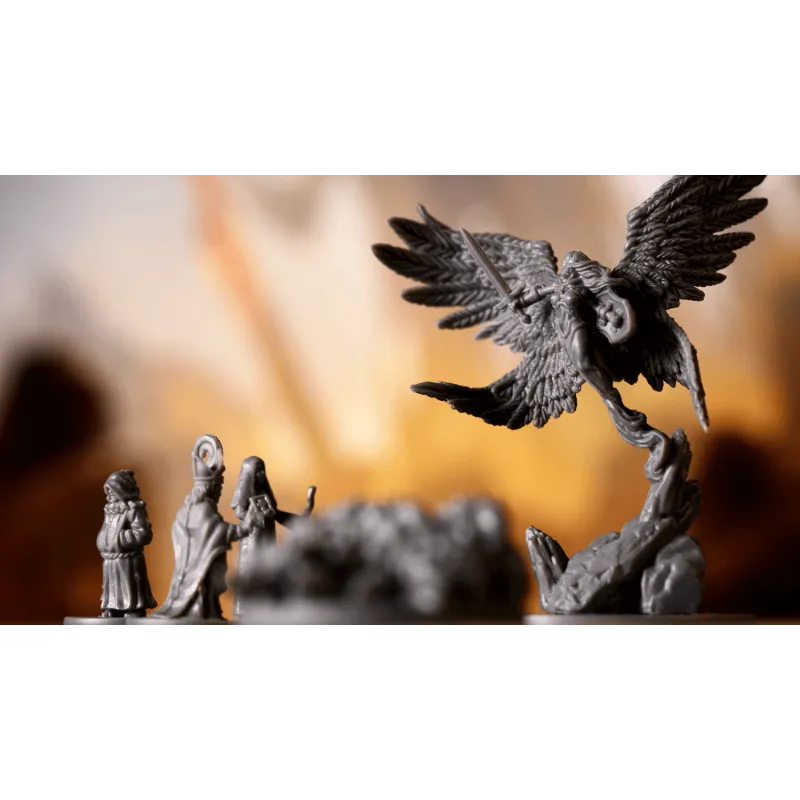The game includes 30 miniatures representing the various people, beasts, and divine beings players will meet along the way, as well as a massive 90mm Abbadon boss miniature. Destinies can also be enjoyed solo, either in the relaxed "Explorer mode," which allows players to take their time immersing themselves in the world, or in the more intense "Challenger mode," which adds special events and time pressure to the gameplay.