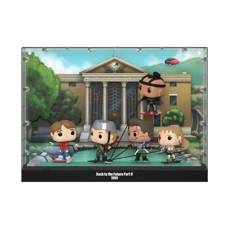Grab Your Hoverboard For A Crazy Getaway! Help Pop! Marty Mcfly™ Evade Pop! Griff Tannen™, Pop! Data, Pop! Whitey, And Pop! Spike When You Welcome Him To Your Futuristic Collection! Complete Your Back To The Future Part Ii™ Lineup With This Deluxe Pop! Moment Featuring The Iconic Hoverboard Chase Across The Pond! Pop! Figures Are Adhered To Backdrop To Ensure Scene Integrity And Ease Of Display. Approximate Dimensions Of Protective Case: 18”W X 13.25”H X 4.75”D (45.7 Cm W X 33.7 Cm H X 12.1 Cm D)