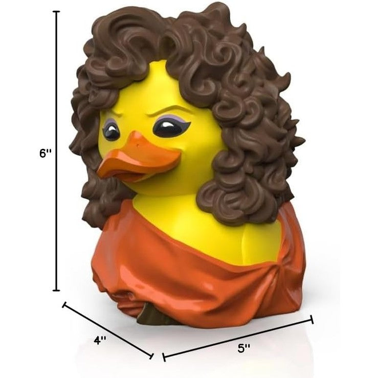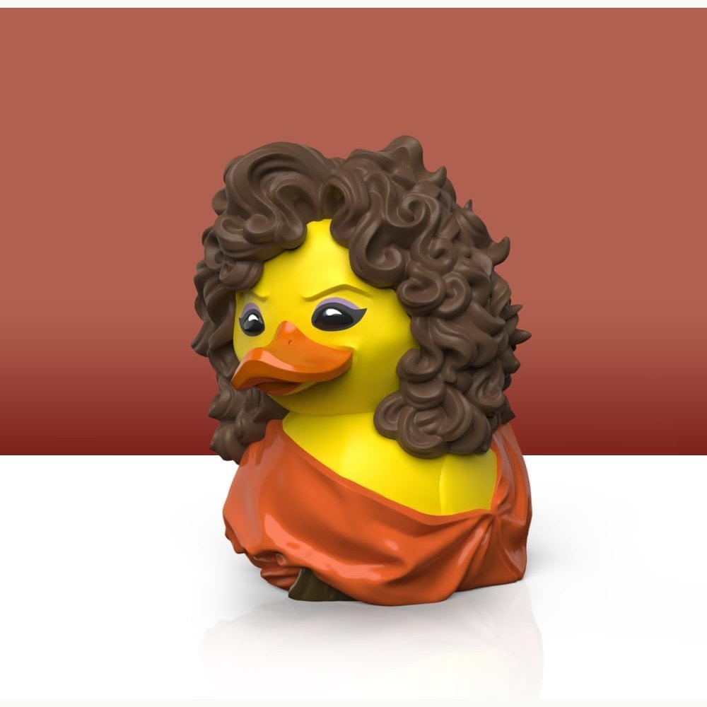 Dana Barrett's evening takes an unexpected turn as she becomes the latest addition to the TUBBZ collection, possessed by Zuul and now in duck form. This officially licensed collectable captures Dana in exquisite detail, from her brown flowing hair to her iconic red dress, all reimagined in an adorable duck figure. Perfect for Ghostbusters fans, this unique piece combines the charm of your favourite pop culture characters with intricate craftsmanship. Dana Barrett in her Zuul-possessed, rubber duck guise is a quacking awesome addition to any collection.
