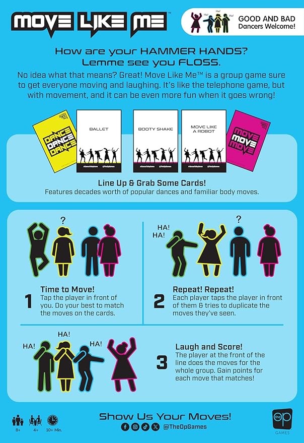 Move Like Me™ is a group game sure to get everyone moving and laughing. It’s like the telephone game, but with movement, and it can be even more fun when it goes wrong!
