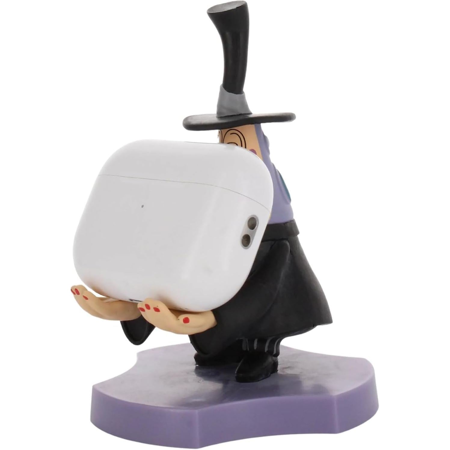 Seamlessly blending spookiness with functionality, this figure, inspired by the iconic character, features a scary , two-faced figure with hands designed to securely hold your earbuds or phone, adding a touch of whimsical charm to your space. _xDC7B_Perfect for keeping your earbuds, phone, and other small gadgets organized. Officially licensed by Disney, styled on Mayor from The Nightmare Before Christmas franchise. A great gift for all those Halloween and scary gadget lovers. Approx 4" tall. Earbuds not included.