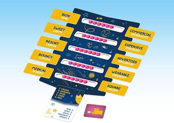 Step into a world of creativity, problem-solving, and teamwork with Perfect Mismatch. This party game challenges 2-8 players to guess words using unusual associations as hints. Can you find something that is both square and non-stop, or extremely herbal but not verbal? Created by Alexander Peshkov, Perfect Mismatch can be played competitively or cooperatively for laughter-filled rounds lasting 20-30 minutes. Each turn, one player describes a secret word by moving beads towards attributes on a board, like romantic or problematic, fingerless or fragile, wearable or helpful, extremely entertaining or not washable. The other players must interpret the clues and quickly vote for their chosen word, earning more points for faster guesses. In cooperative mode, players unite to achieve the highest combined score, using teamwork to interpret hints and strengthen their understanding.