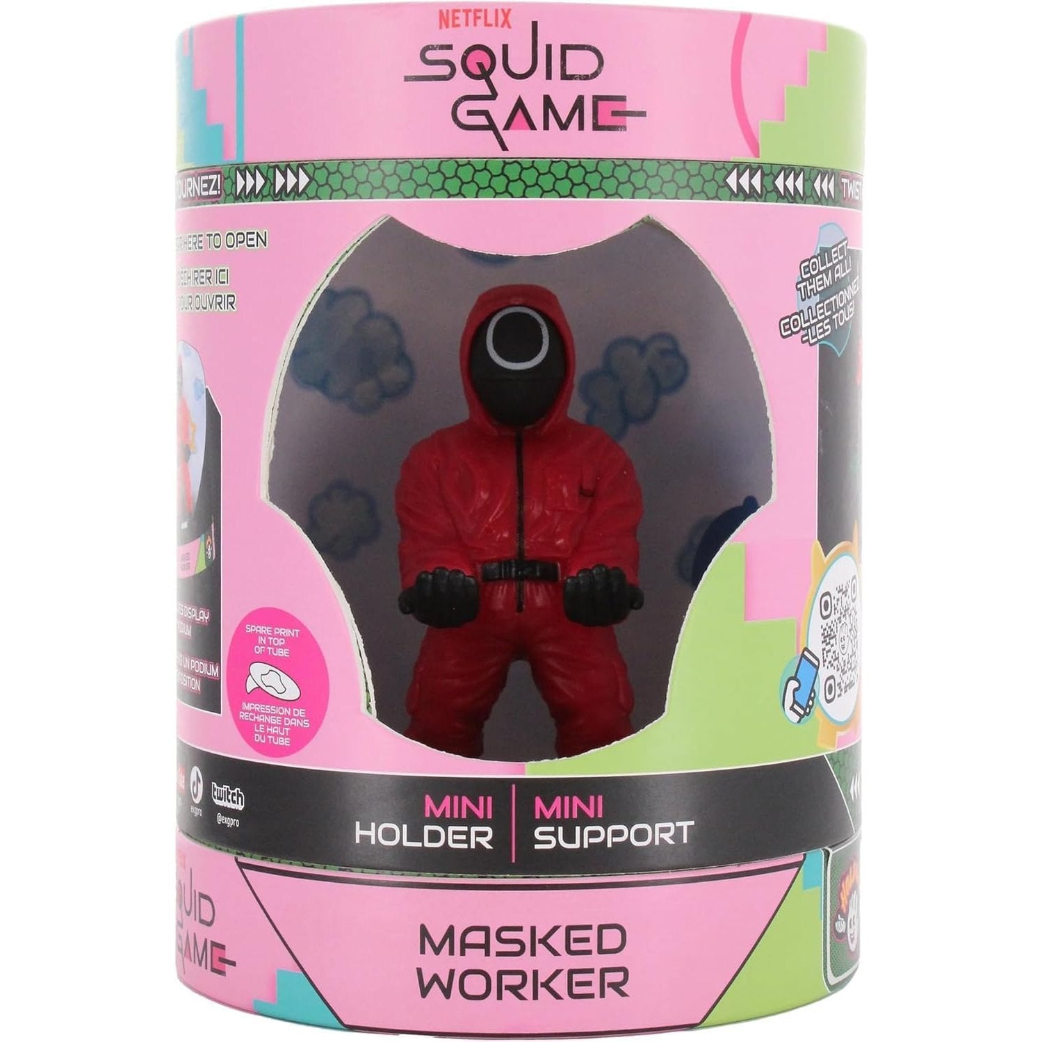 This collectible 4.5 inch mini figure is intricately designed to securely cradle your phone or earbuds, adding a burst of personality to your tech setup. With its unique design, the Squid Games Masked Worker Holdem effortlessly combines practicality with visual appeal, promising to elevate your set-up with a touch of artistic charm. Collect all four Squid Game Holdems!