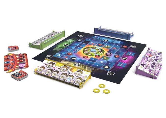 Each turn, players press 2 of the 9 buttons on their cockpit dashboard in their chosen order to activate various effects, such as moving through space, shooting enemy ships, or using special actions. As you move onto new Space tiles, you flip them over. If you encounter a jammer, you need to use 1 energy to destroy it. Players start with 1 energy and can earn additional energy by defeating enemy ships. Be cautious not to accidentally shoot a teammate, as this will cost them 1 energy.
