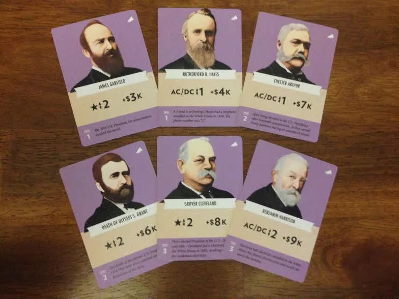 - Experience Historical Events: With 21 new cards, this expansion brings historical moments of the War of Currents to life, introducing thrilling opportunities and challenging calamities that make every turn unique.